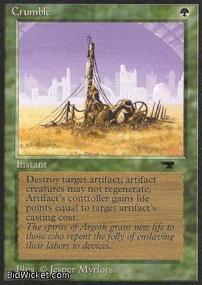 Card Text: Bury target artifact. Artifact's controller gains life equal to the artifact's casting cost.