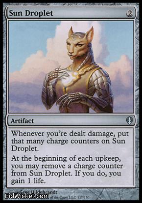 Card Text: Whenever you're dealt damage, put that many charge counters on Sun Droplet.