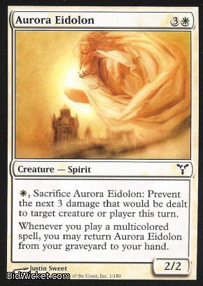 Card Text: {W}, Sacrifice Aurora Eidolon: Prevent the next 3 damage that would be dealt to target creature or player this turn. Whenever you play a multicolored spell, you may return Aurora Eidolon from your graveyard to your hand.