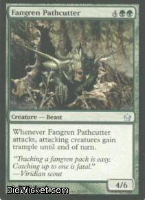 Card Text: Whenever Fangren Pathcutter attacks, attacking creatures gain trample until end of turn.
