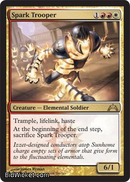 Card Text: Trample, lifelink, haste At the beginning of the end step, sacrifice Spark Trooper.