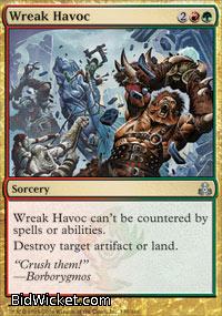 Card Text: Wreak Havoc can't be countered by spells or abilities. Destroy target artifact or land.