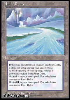 Card Text: If there are any depletion counters on River Delta, it does not untap during your untap phase. At the beginning of your upkeep, remove a depletion counter from River Delta. <T>: Add <U> to your mana pool. Put a depletion counter on River Delta. <T>: Add <B> to your mana pool. Put a depletion counter on River Delta.