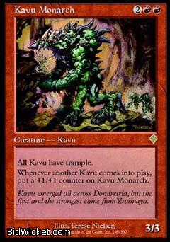 Card Text: All Kavu have trample. Whenever another Kavu comes into play put a +1/+1 counter on Kavu Monarch.