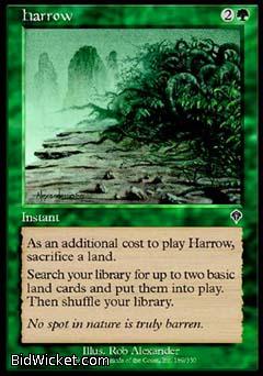 Card Text: As an additional cost to play Harrow sacrifice a land. Search your library for up to two basic land cards and put them into play. Then shuffle your library.