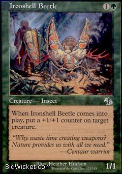 Card Text: When Ironshell Beetle comes into play, put a +1/+1 counter on target creature.