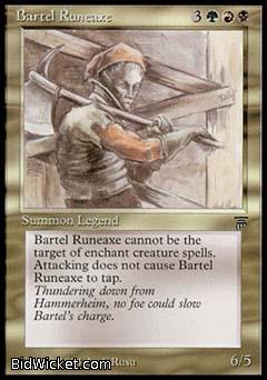 Card Text: Bartel Runeaxe cannot be the target of enchant creature spells. Attacking does not cause Bartel Runeaxe to tap.