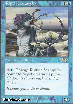 Card Text: 1U: Change Riptide Mangler's power to target creature's power. (It doesn't change back at end of turn.)