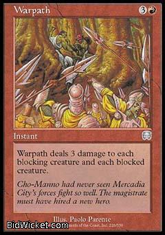 Card Text: Warpath deals 3 damage to each blocking creature and each blocked creature.