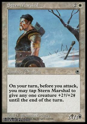 Card Text: On your turn, before you attack, you may tap Stern Marshal to give any one creature +2/+2 until the end of the turn.
