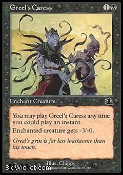 Card Text: You may play Greel's Caress any time you could play an instant. Enchanted creature gets -3/-0.