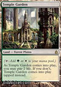 Card Text: (Tap: Add G or W to your mana pool.) As Temple Garden comes into play, you may pay 2 life. If you don't, Temple Garden comes into play tapped instead.