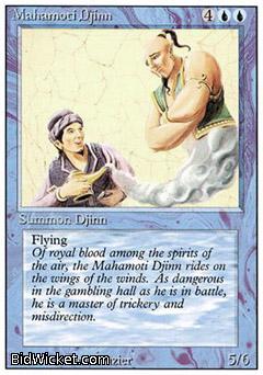 Flavor Text: Of royal blood among the spirits of the air, the Mahamoti Djinn rides on the wings of the winds. As dangerous in the gambling hall as he is in battle, he is a master of trickery and misdirection.