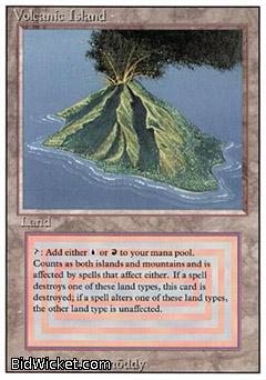 Card Text: <T>: Add either <U> or <R> to your mana pool. Counts as both islands and mountains and is affected by spells that affect either. If a spell destroys one of these land types, this card is destroyed; if a spell alters one of these land types, the other land type is unaffected.