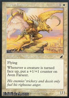 Card Text: Flying Whenever a creature is turned face up, put a +1/+1 counter on Aven Farseer.
