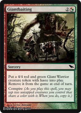 Card Text: Put a 4/4 red and green Giant Warrior creature token with haste into play. Remove it from the game at end of turn. Conspire (As you play this spell, you may tap two untapped creatures you control that share a color with it. When you do, copy it.)