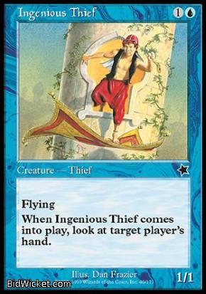 Card Text: Flying When Ingenious Thief comes into play, look at target player's hand.