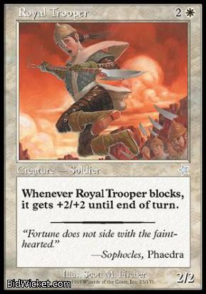 Card Text: Whenever Royal Trooper blocks, it gets +2/+2 until end of turn.