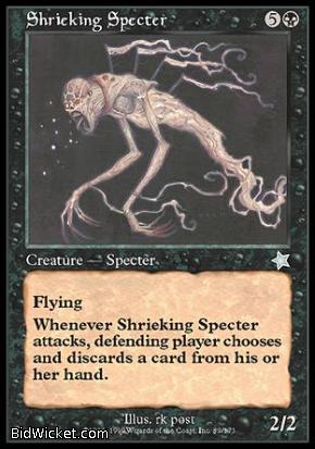 Card Text: Flying Whenever Shrieking Specter attacks, defending player discards a card.
