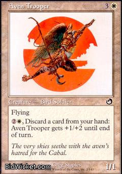 Card Text: Flying 2W, Discard a card from your hand: Aven Trooper gets +1/+2 until end of turn.