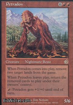 Card Text: When Petradon comes into play, remove two target lands from the game. When Petradon leaves play, return the removed cards to play under their owners%92 control. R: Petradon gets +1/+0 until end of turn.