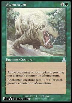 Card Text: At the beginning of your upkeep, you may put a growth counter on Momentum. Enchanted creature gets +1/+1 for each growth counter on Momentum.