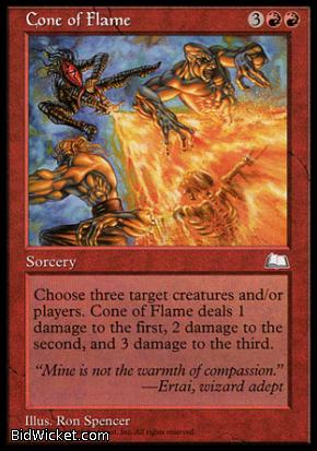 Card Text: Choose 3 target creatures and/or players. Cone of Flame deals 1 damage to the first, 2 damage to the second, and 3 to the third.