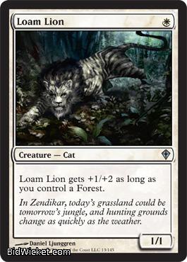 Card Text: Loam Lion gets +1/+2 as long as you control a Forest.